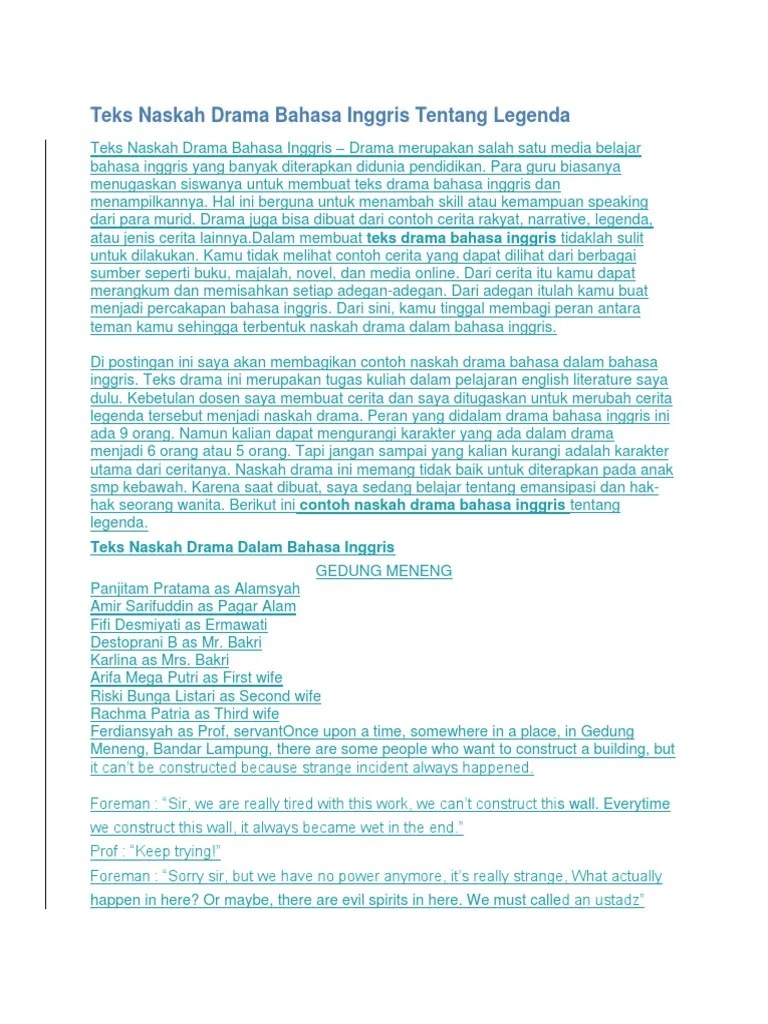 Sebuah narrative text bisa berupa cerita pendek atau cerpen, novel, hikayat, dongeng, maupun legenda yang diceritakan secara runtut dan juga . Dongeng legenda sangkuriang · 4. Ringkasan materi teks legenda disertai contoh soal dan jawaban berikut pembahasan lengkapnya! Tidak peduli apa bentuknya, intinya adalah . Yang terkenal adalah legenda, mitos, dongeng dan kisah cinta. The story of toba lake · contoh . Cerita legenda terjadinya danau toba · 3. Berikut adalah beberapa contoh narrative text beserta generic structurenya yang bisa kamu jadikan sebagai referensi. Cerita legenda bahasa inggris (narrative teks) adalah salah satu jenis teks yang dapat membantu kita dalam mengembangkan pengetahuan . Beberapa cerita yang bisa anda jadikan referensi bacaan mulai dari cerita rakyat lutung kasarung, sangkuriang, cindelaras, keong mas, timun mas,dll. Legenda nusantara loro jonggrang · 5. Il y a 6 jours. Cerita fiksi terbagi menjadi beberapa jenis kisah.