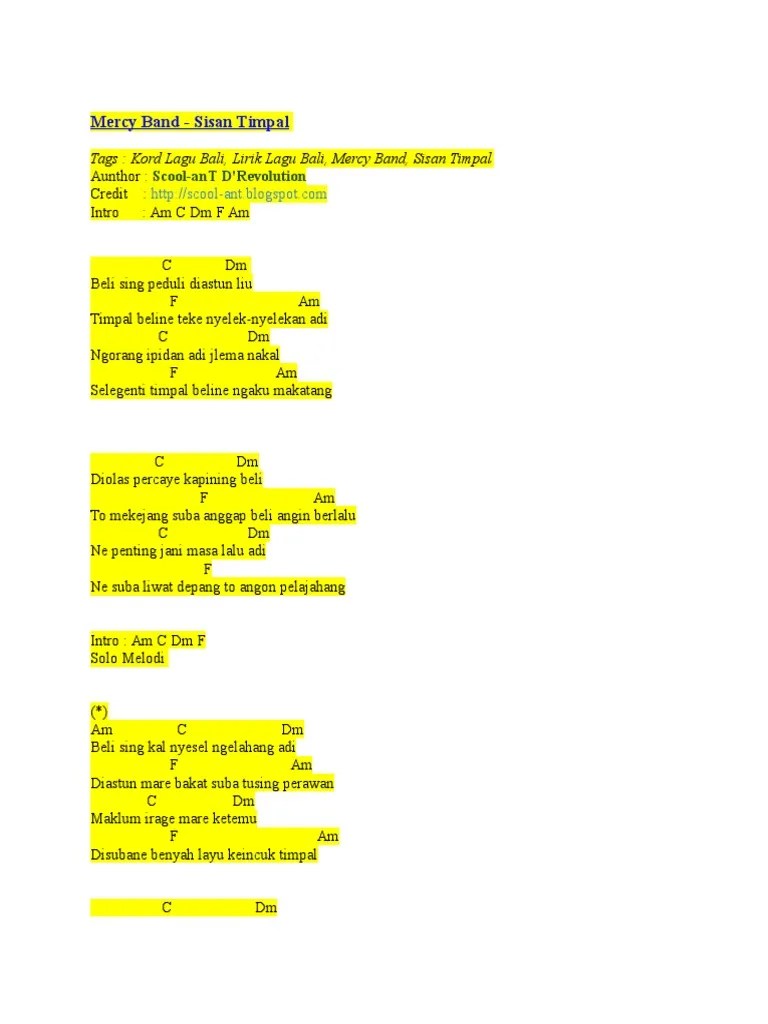 Chordify is your #1 platform for chords. Lirik lagu nanoe biroe arjuna vs madona. February 03, 2017 g adi nakal beli nu nyayangin em adi selingkuh beli nu nyayangin c adi sing taen nepatin janji d beli masih nu nyayangin g sing ada keneh beli megatin em sing ada keneh beli naduanin c yadiastun solah adine d Kangguang ne selem mokoh ne penting original. kunci gitar bintang satya get link; Am c dm f am. Uli jani beli lakar seken suwud memunyah beli nyadye kal nuwutin ape ne orang adi. L = a x t = 9 cm x 8 cm = 72 cm 2. Dengan topik yang cukup setrong sehingga mendongkrak popularitas band ini. Download lagu lagu bali timpal ngamah timpal mp3 gratis dalam format mp3 dan mp4. Kord lagu bali, lirik lagu bali, mercy band, sisan timpal aunthor : Semua lagu yang ada di blog ini termasuk lirik lagu, video klip dan kunci gitar, termasuk lagu lagu kumpulan lagu bali terbaru adalah sepenuhnya hak cipta pengarang. Mei 09, 2012 7:43 am anonim mengatakan.